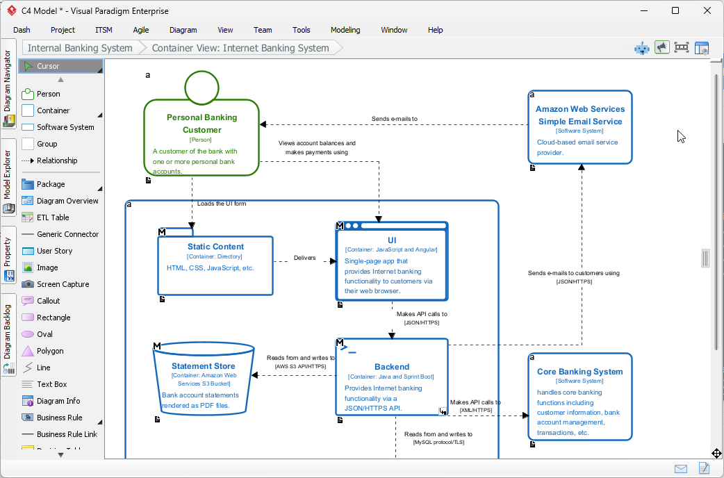 For details please check out how you can use Visual Paradigm’s C4 toolset to model your system.
